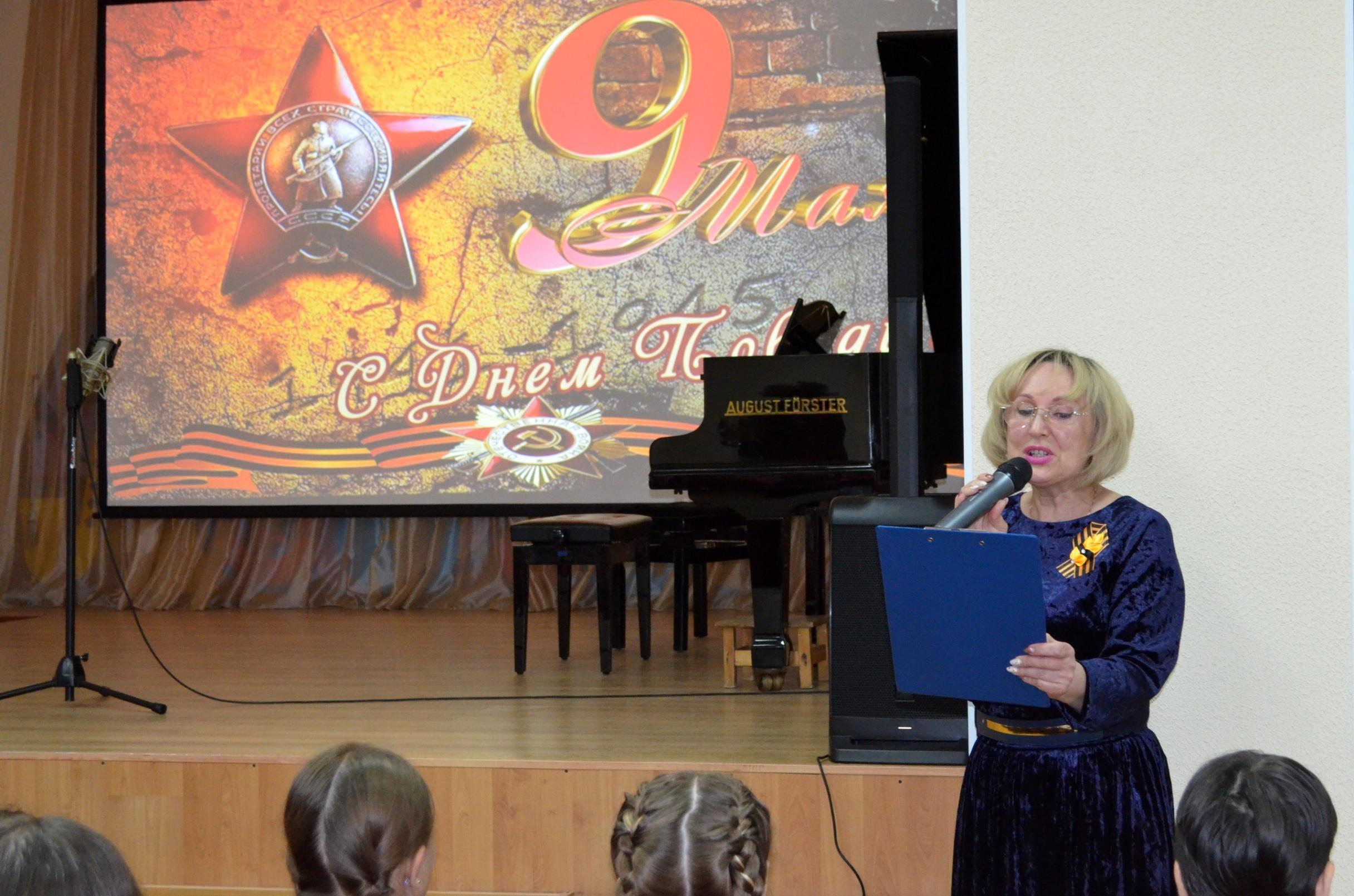 Слушатели перенесутся в суровые 40-е годы, чтобы отдать дань уважения подвигу поколения победителей. Будут показаны редкие кадры военной хроники, пронзительные фотографии тех лет, прозвучат стихи и песни о войне в исполнении учащихся хорового отделения. На сцене выступят хоровые коллективы школы, солисты, а также инструментальный ансамбль в составе Власовой Н.В. и Кривенцовой А.В.